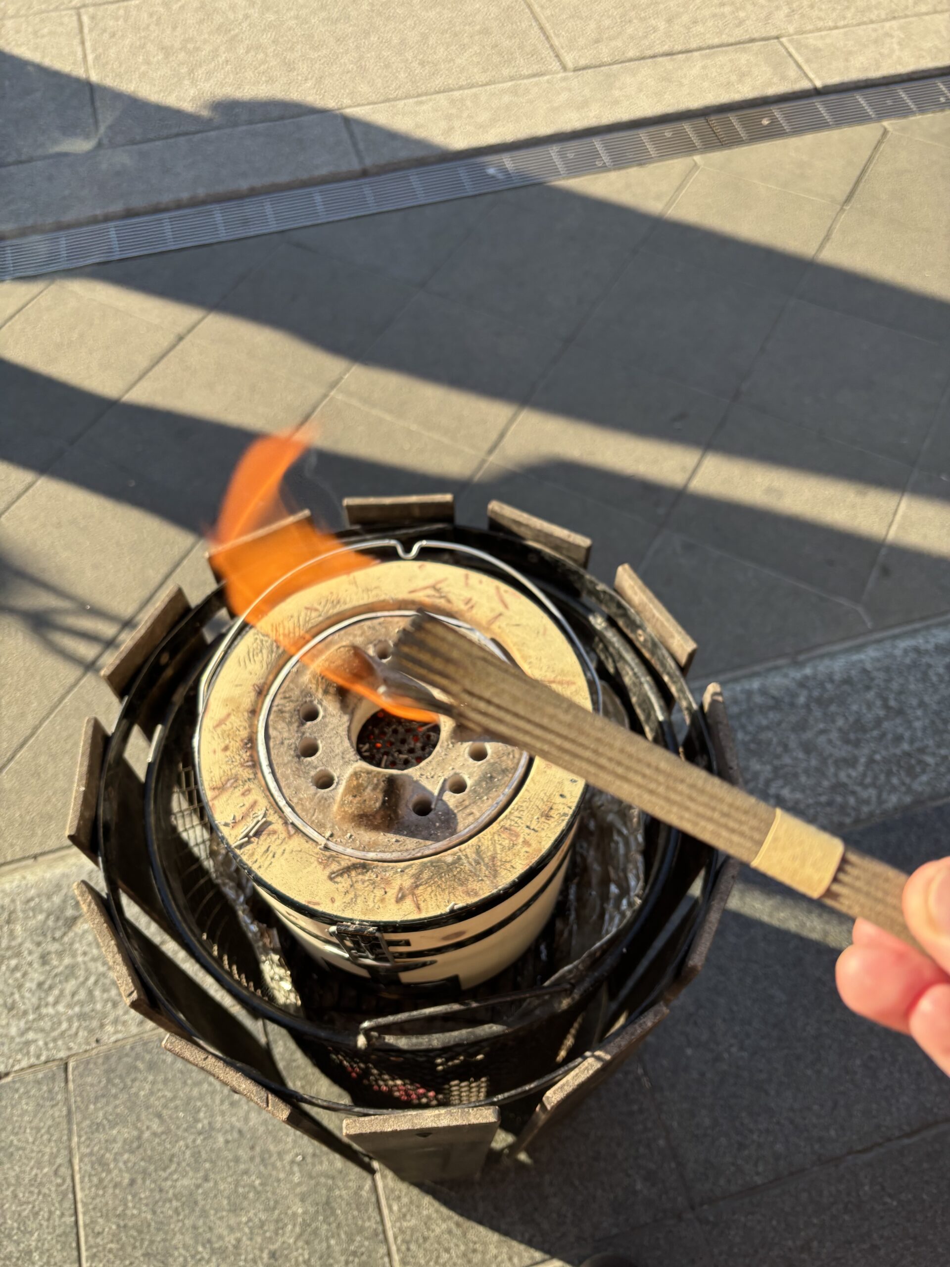 購入した線香は、近くで火をつける事ができます。