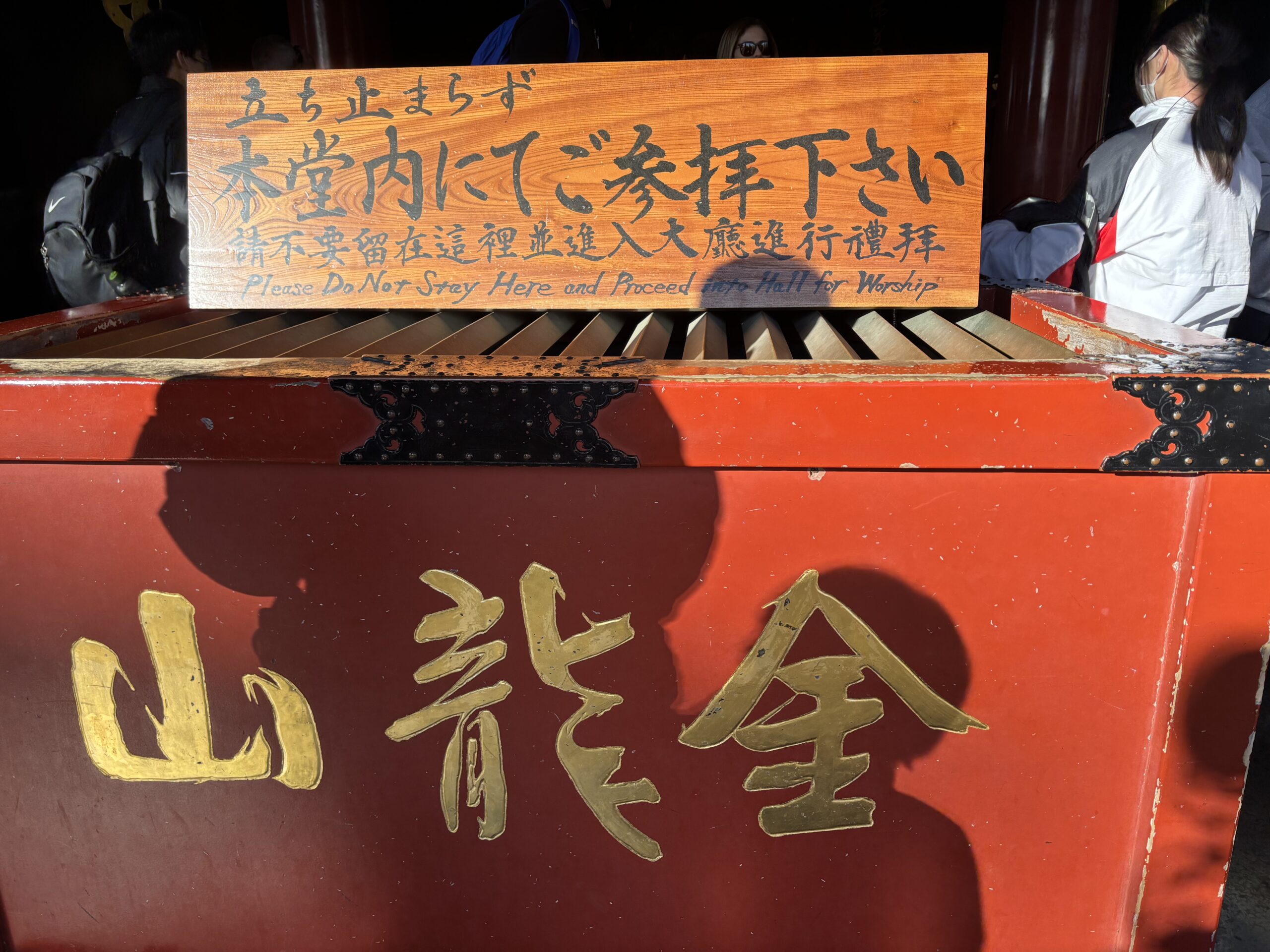 お賽銭箱は二つあり、どちらに入れても問題ありませんが、奥の大きな賽銭箱まで行った方が観音様の近くで参拝が出来るのでおすすめです。