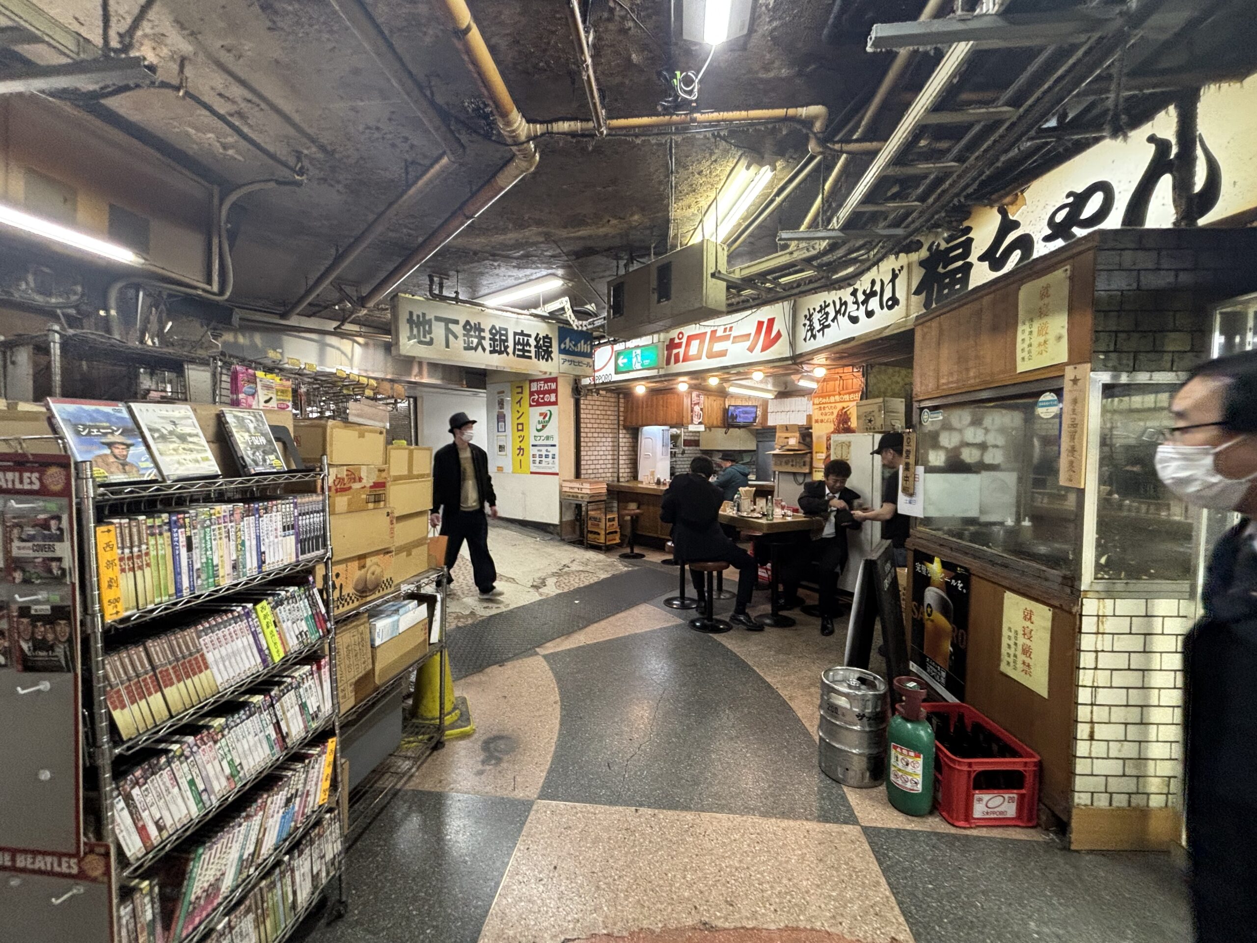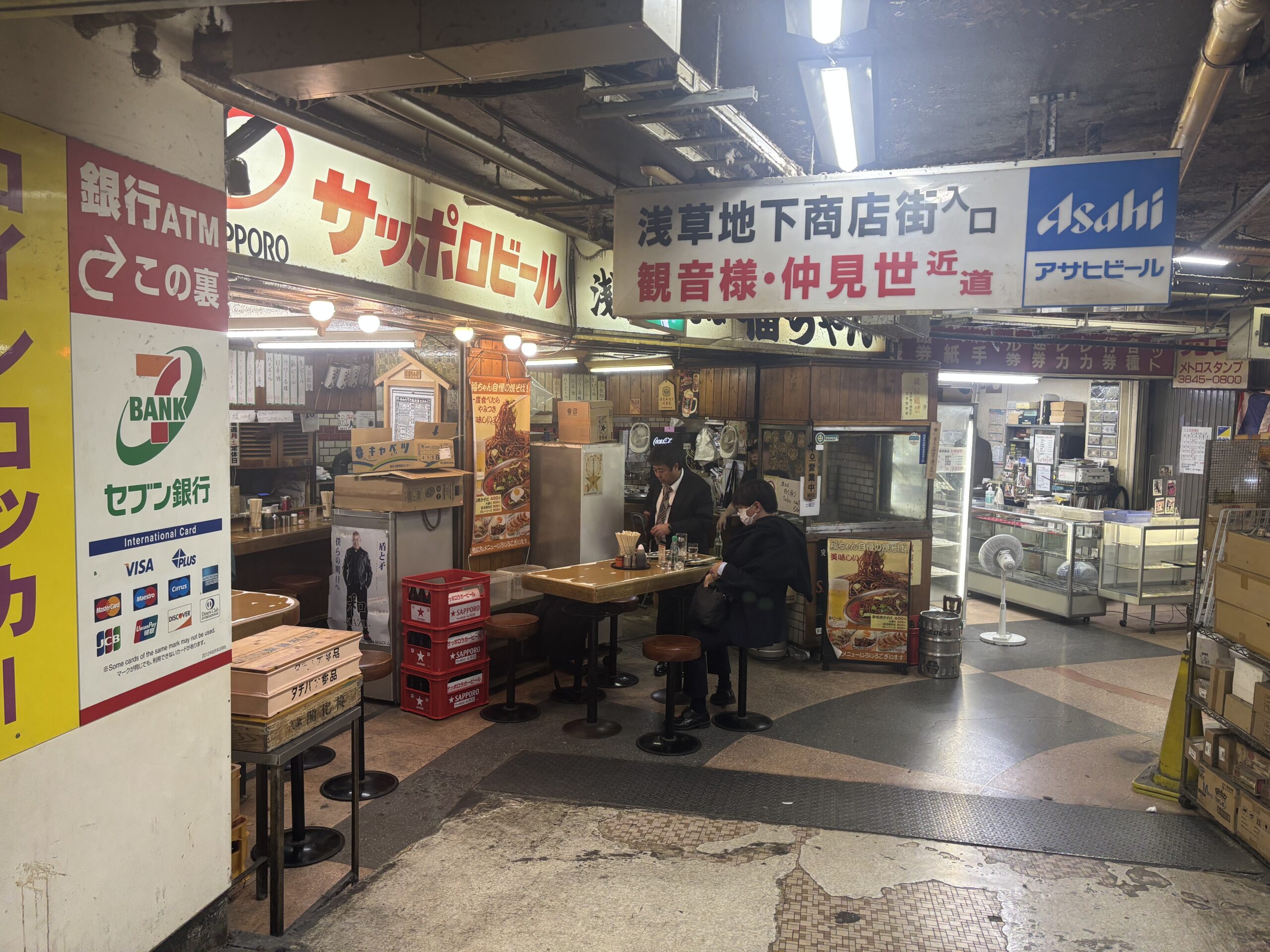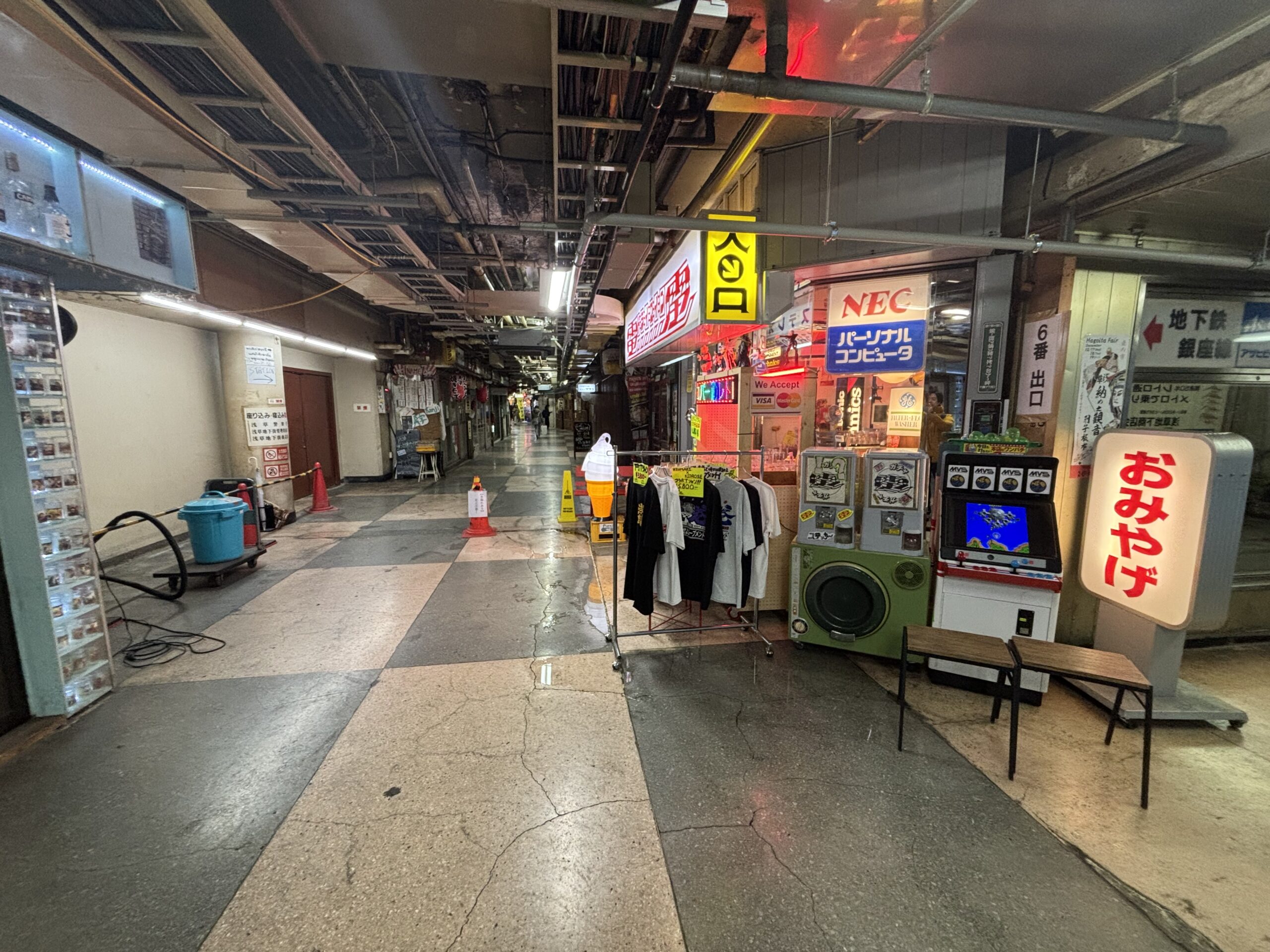 浅草駅の地下から行ける「浅草地下商店街」です。浅草の地下に潜ると、いつの時代なのか、時が止まったような光景が広がっています。